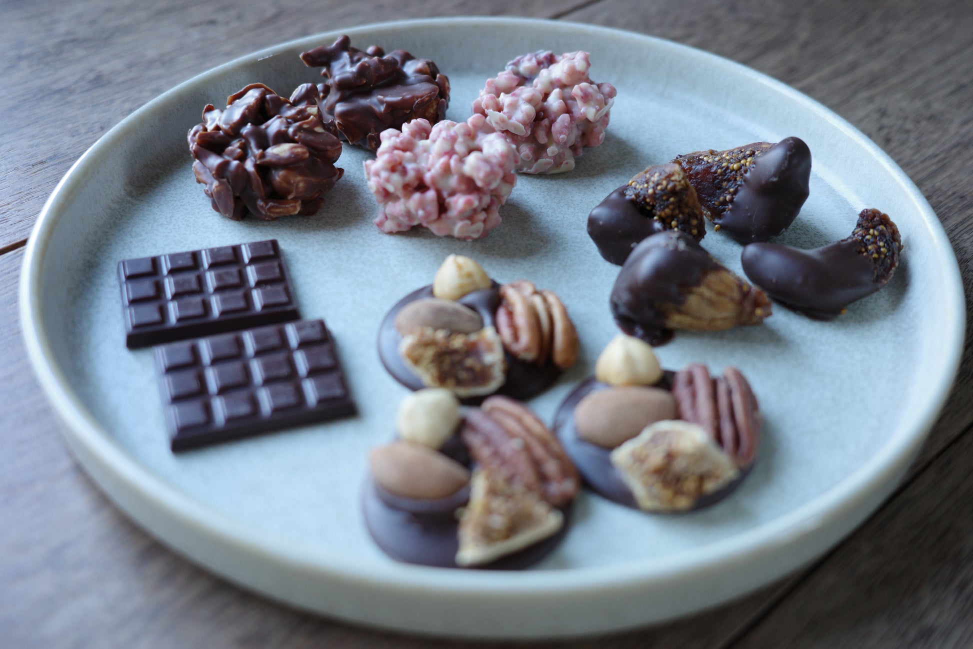 無花果、ピエモンテのヘーゼルナッツ、マルコナアーモンド、ピーカンナッツ、ダークチョコレートカカオ70%